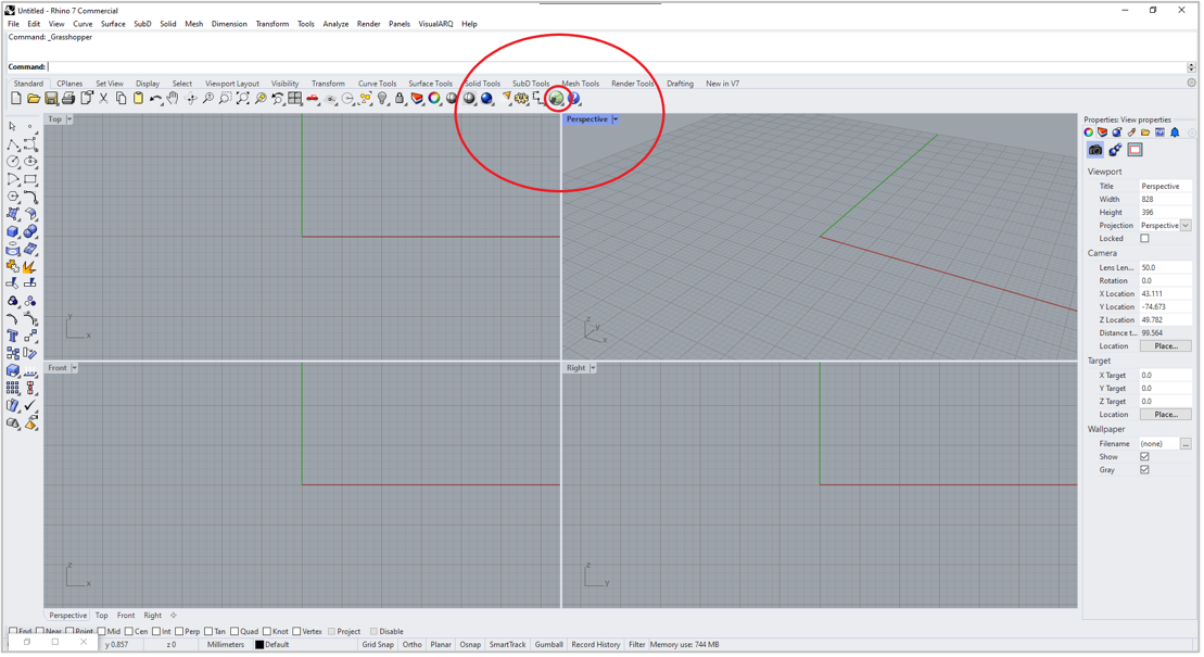 Launch Rhino and Click Grasshopper icon. It launches the Grasshopper plugin for Rhino.