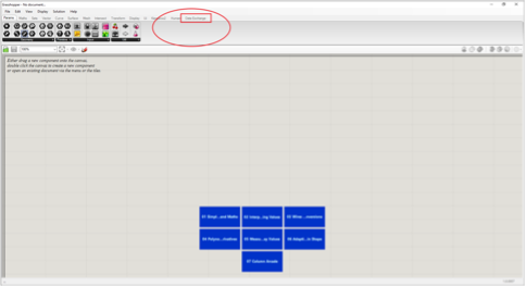 Click Data Exchange, then you get the Rhino-Grasshopper-Data Exchange Connector menu.