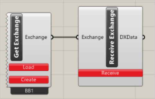 Connect the GetExchange node output to the input of the ReceiveExchange node. It reads the data from Data Exchange and converts it into DXData format.