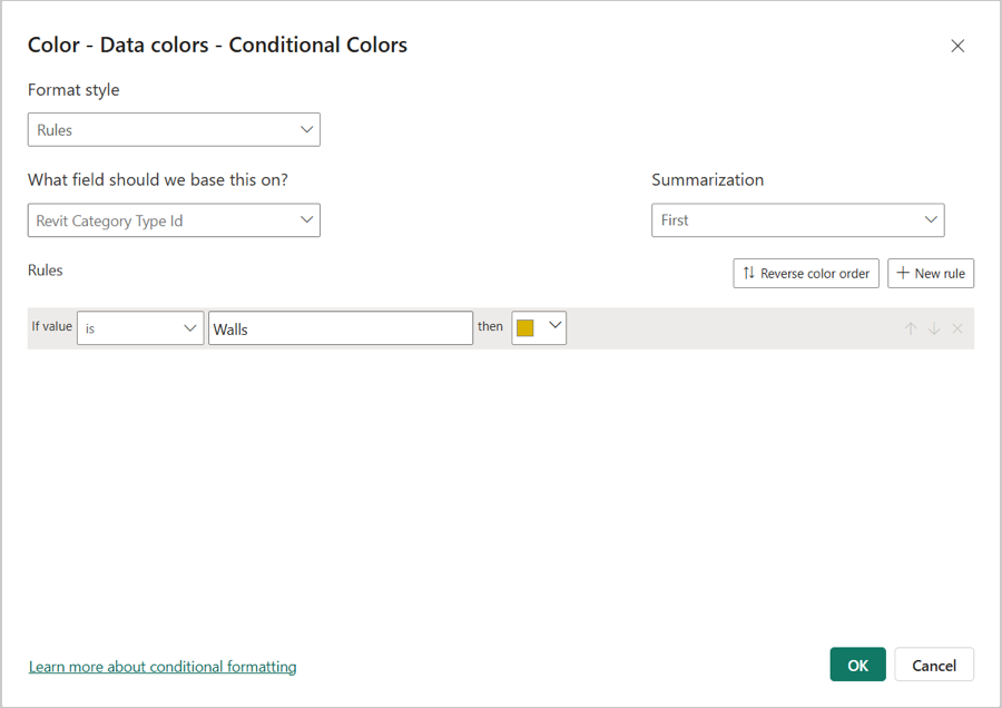 Alternatively, you can apply colors by setting conditions directly in the 'Conditional Colors' section.