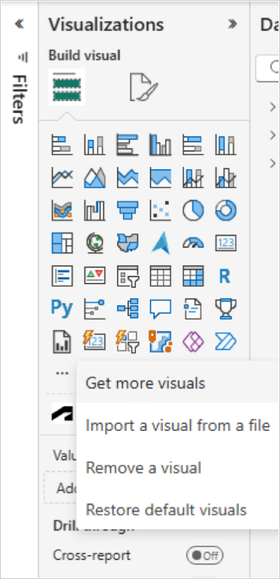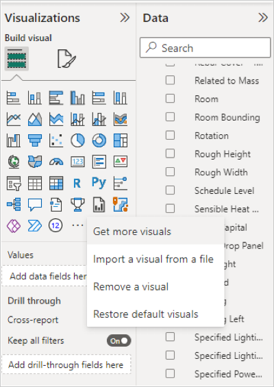 Click More (...) menu in the Power BI desktop Visualizations pane.