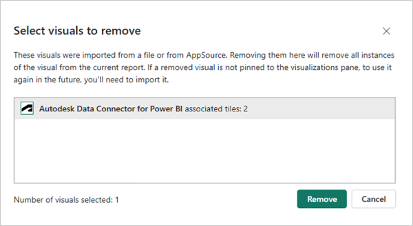 Select Autodesk Data Connector and click Remove. It removes the visual from viewer.