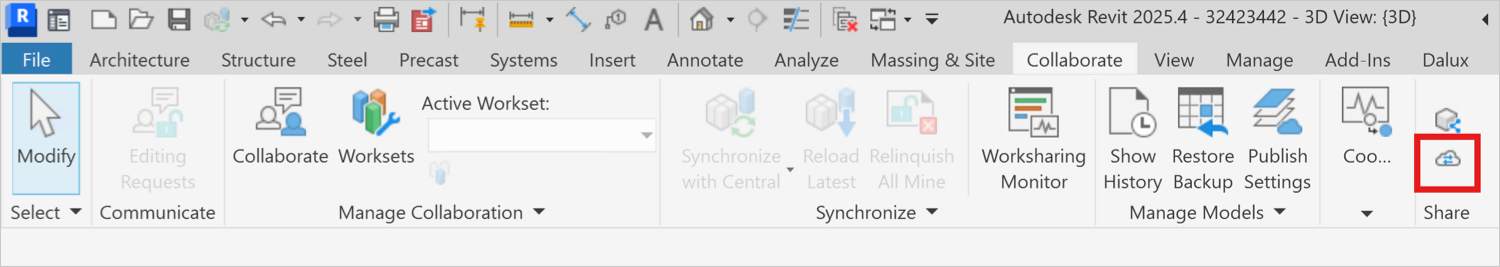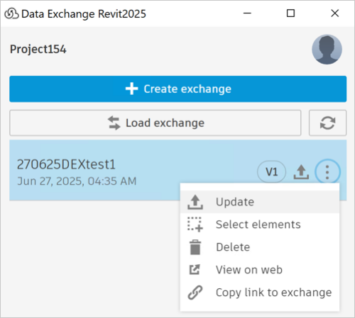 Note: The up-arrow button beside the exchange indicates that you created it using your Revit model. If you modify your model locally, then you can update the exchange with the latest changes.