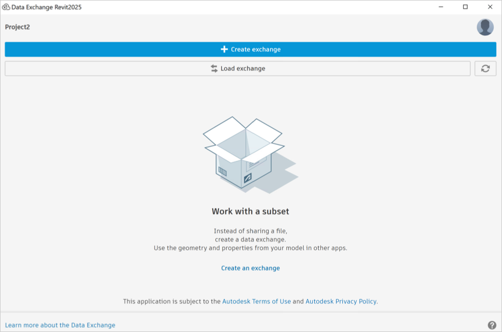 This topic details how to create an exchange of your Revit model using the Autodesk Data Exchange Connector for Revit and save it to Autodesk Docs. After the exchange is created successfully, it will be listed in Revit to view or update later.