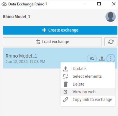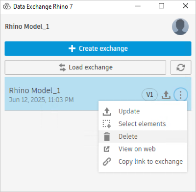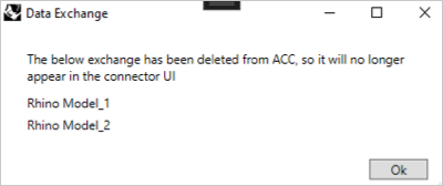 You can delete exchanges that you created directly from the connector interface. This will remove the exchange from Autodesk Docs (ACC), while the model data will remain intact in Rhino.