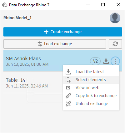 Click the More menu and click Select Elements from the drop-down list. It highlights the selected exchange elements in Rhino.