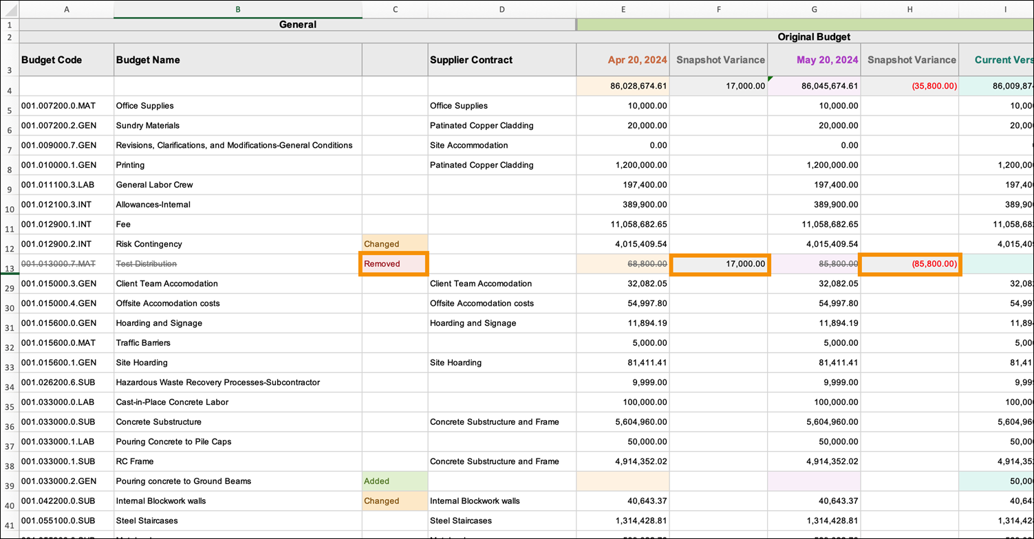 Budget Snapshot Report Enhancement – The Budget Snapshot report now includes a new status column showing whether an item has been Added, Changed, or Removed. Also, when exporting the report, a new option allows members to include a variance column showing the delta between snapshot versions.