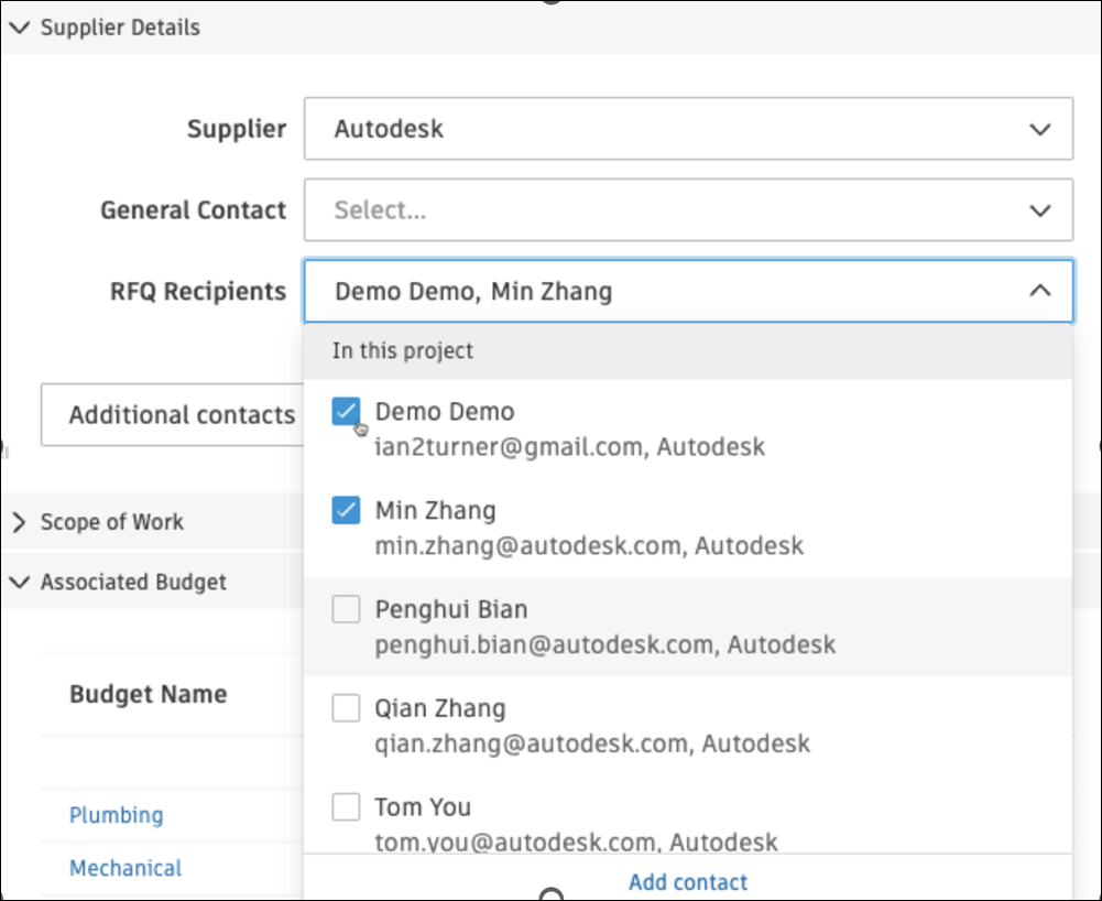 Note: Full control or above permission level is required.Multiple RFQ Recipients – In the Contract Flyout, the additional contract field for RFQ Recipient now allows multiple contacts. Also, in the RFQ flyout, the Contact field now also allows multiple contacts.