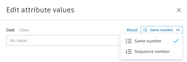 Sequence number: This will sequence the attribute number values from a starting number and with incremental values according to the numbers you enter: