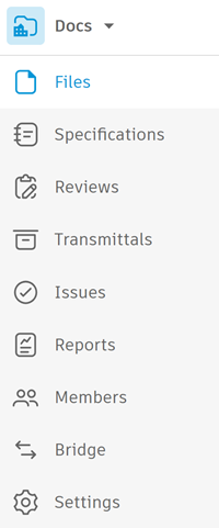 The left navigation within Autodesk Docs contains the tools available to use for specific workflows.