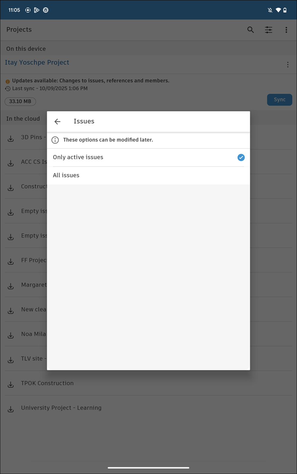 By default, when you download your project on your Android device, only active issues are downloaded.