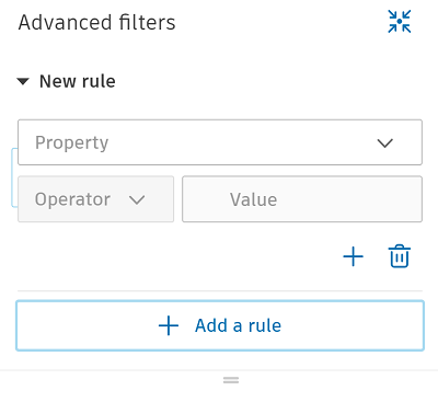 If the basic filters don't meet your needs, you can create custom rule-based filters where each consists of a property, operator, and a value.