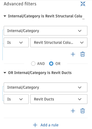Note: To avoid the Revit prefix on values, use the property Internal/Category Name instead.Click Add a rule.