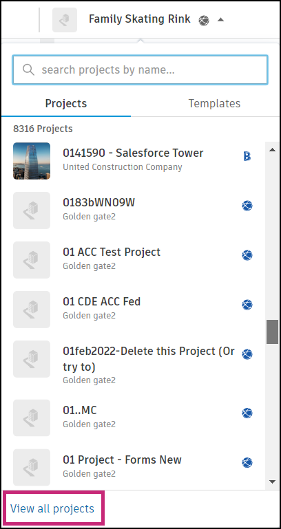 - Click View all projects.