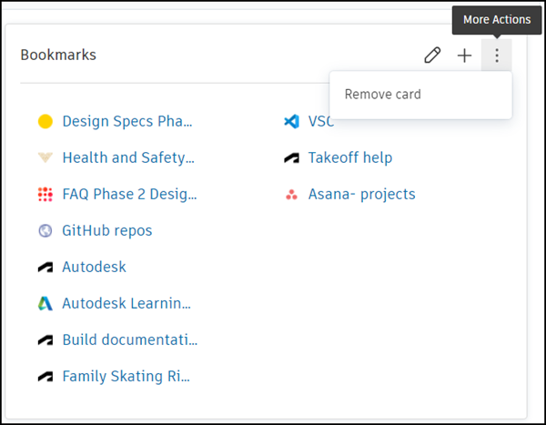 Tip: To get the URL required to add a Project Design card, open the model or project in the viewer in the Files tool, and copy the URL from the address bar.In Customize Dashboard that you can also click Customize to: