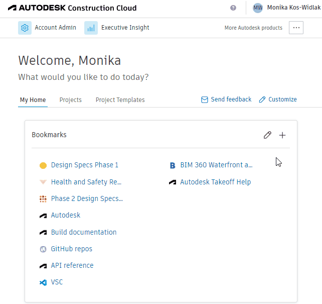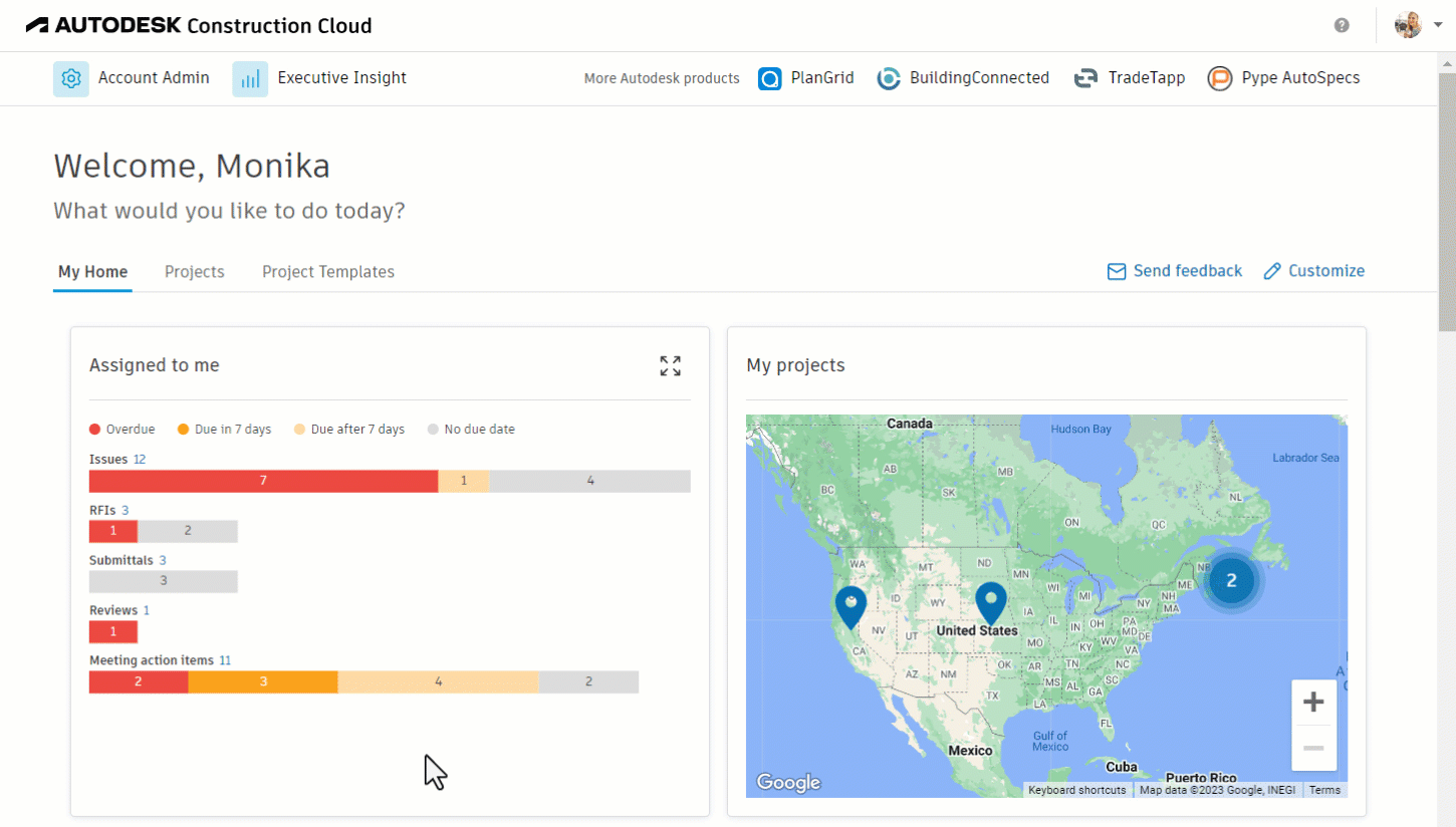 My Projects card shows all the Autodesk Construction Cloud™ projects that you have access to.