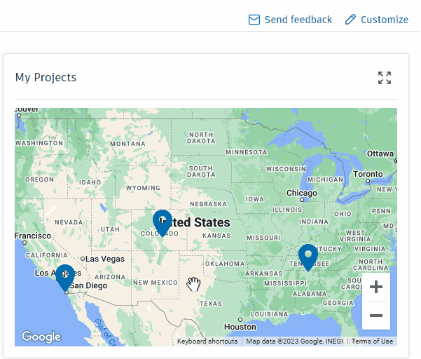 - Hover over a pushpin to view the name of the project associated with the pushpin location.