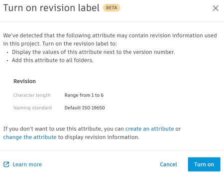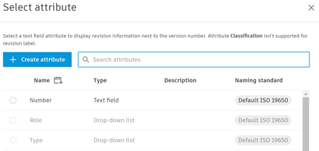 If an attribute containing revision information isn't detected or is detected incorrectly, you can create an attribute or change to an attribute which exists in the project.