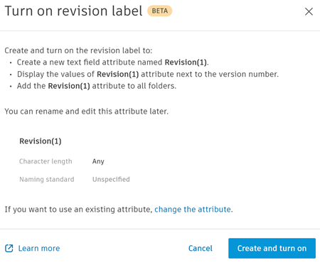 Note: If an attribute named Revision already exists and is not selected for the revision, the new attribute will be named Revision(1).