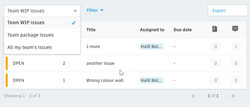 Team package issues - to see only those issues created on your team's work-in-progress models.