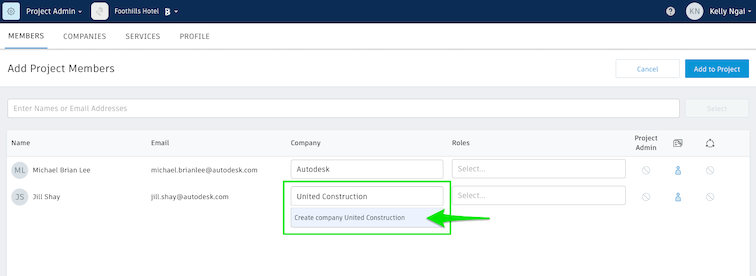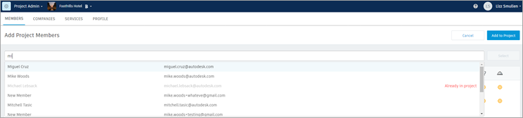 In the Add Project Members field, start typing a member's name if that person is already in the account.