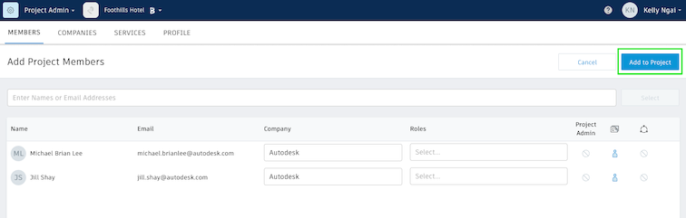Note: To add a member who is not already in the account, enter that person's email address in the Add Project Members field.Click Select.