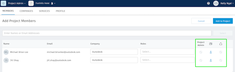 Note: The list of added members will display the project member status of someone who was previously added.Repeat steps 2 - 4 to add multiple members to a project at the same time.