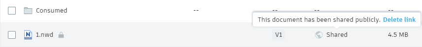 - Move your cursor to the Shared column while still hovering over the shared document.