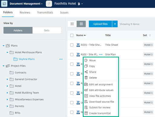 When you lock a file, other members cannot delete, copy, move, rename, overwrite, or make it current (applies to Project Files folders only). When a document is locked, a Lock icon will appear next to it and you will notice the More menu is deactivated.