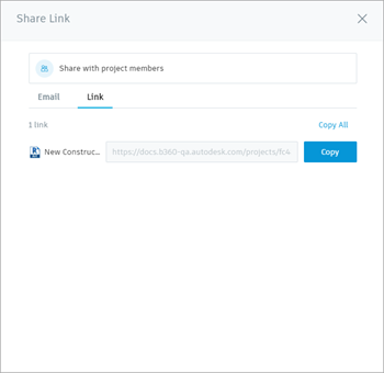 Tip: If you are sharing with project members, click in the text field to search for members, roles, or companies.If you choose to generate links, click Copy or Copy All to copy the links to your clipboard and then send them to your recipients using your preferred method.