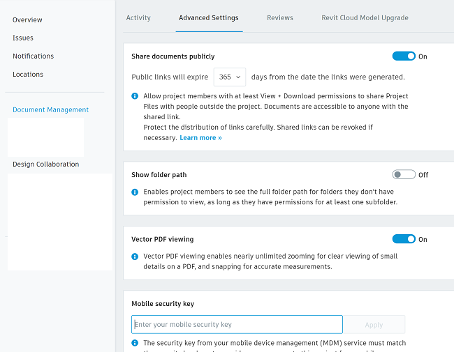 Share a link to documents or folders with project members or members of the public. Project member recipients need view permissions to view the shared documents. Only documents in the Project Files folder can be shared with the public. Before documents can be shared publicly, a project administrator must enable public sharing. To do so: