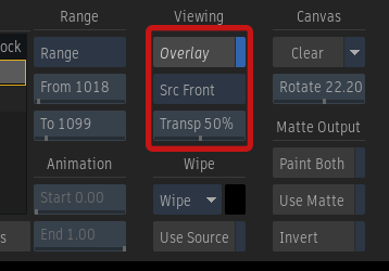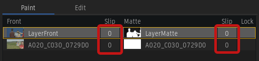 A reference image that is offset in time can be overlaid on the canvas. You can slip a front, matte, result, output matte, source front, and source matte clips. In the Sources list, use the Slip field to indicate the offset amount.