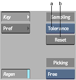 Note: If you are not satisfied with the result of the last sample, click Undo. The last sample you performed is cancelled. To reset the entire tolerance sample, click the Sampling Reset button. To remove the entire sample range at the current frame and start over with a new sample, press Ctrl+Alt and drag the cursor in the area to be keyed out.