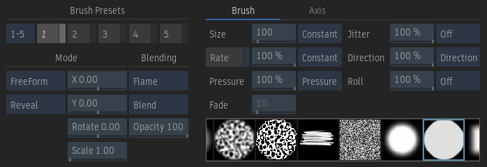 The Edit tab is used to edit existing brush strokes.