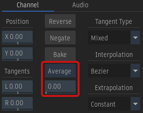 Average removes jitter from a jittery animation track. While the Jitter option is used for removing jitter caused by trackers in the Stabilizer, the Average option is used to remove jitter from an animation track. Enter the number of keyframes used to calculate the average in the Curve Value field.
