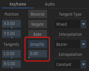 Use a large number to simplify the curve or group of keyframes. Use a small number to increase the number of keyframes. The value in the Curve Value field produced by the drag returns to zero after release.