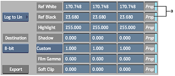 - To set independent R, G, or B values, disable Prop and then enter the value in the corresponding (left-to-right) R, G, or B Ref White and Ref Black fields.