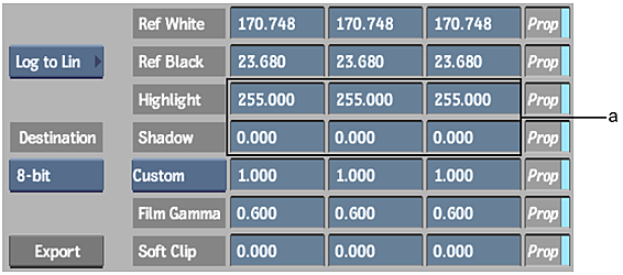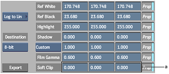 - To set independent custom R, G, or B gamma correction values, disable Prop, and then enter the value in the corresponding (left-to-right) R, G, or B Softclip field.