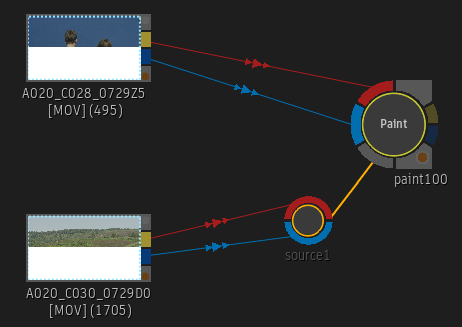 To help identify source nodes in the schematic, select a source in the Sources list to automatically highlight in orange the corresponding source node and link to the Paint Node. Conversely, selecting a source node also highlights the corresponding source in the Sources list.
