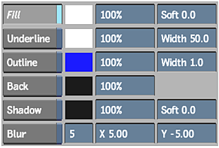 These text attributes have a cumulative effect on the selected characters. For example, if you enable the Fill and Outline buttons, the text appears as solid characters with a coloured outline.