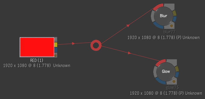The Elbow node inherits the colour of its link. It turns red, if connected to a Front input, blue, if connected to a Matte input and grey when connected to Back input or when connected to multiple inputs.