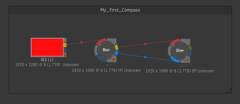 - By dragging the Compass node from the Node bin. This creates an object of fixed width and height. The width and height can be modified afterwards.