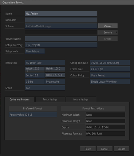 Starting with version 2022, you now create storage volumes directly in Flame, from the Project Management creation window.