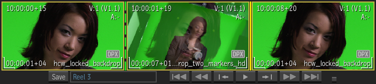 - Position the cursor over a grey area between clips or sequences on a reel.