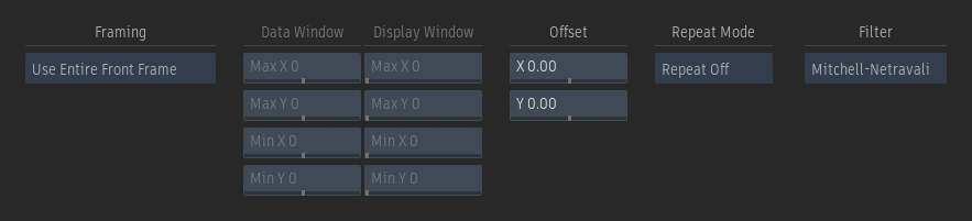 Use Entire Front Frame | Sample pixels from the first pixel at the bottom left of the Front clip (0,0) to the last pixel at the top-right (1,1). This mode should be used when: