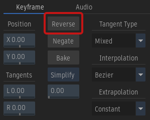 Negate flips a channel or a group of keyframes vertically. Reverse flips a channel or a group of keyframes horizontally.