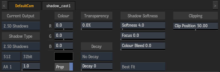 Displays the position of the clipping plane for 2.5D shadows, relative to the depth of the shadow. Use to define at what depth the shadow begins to be shown.
