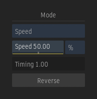 Select a Timewarp mode: Speed, Timing, or Duration (Duration is only available from timeline timewarp). Different settings appear depending on the mode selected. Timewarp modes are mutually exclusive, that is, animation settings are remembered for each mode.
