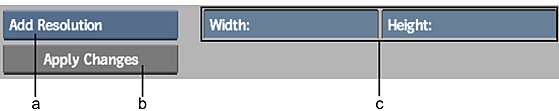 (a) Add Resolution box (b) Apply Changes button (c) Width and Height fields