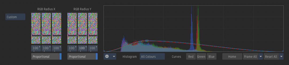 Enable to adjust the radius on the y-axis of the red, green, and blue channels proportionally.